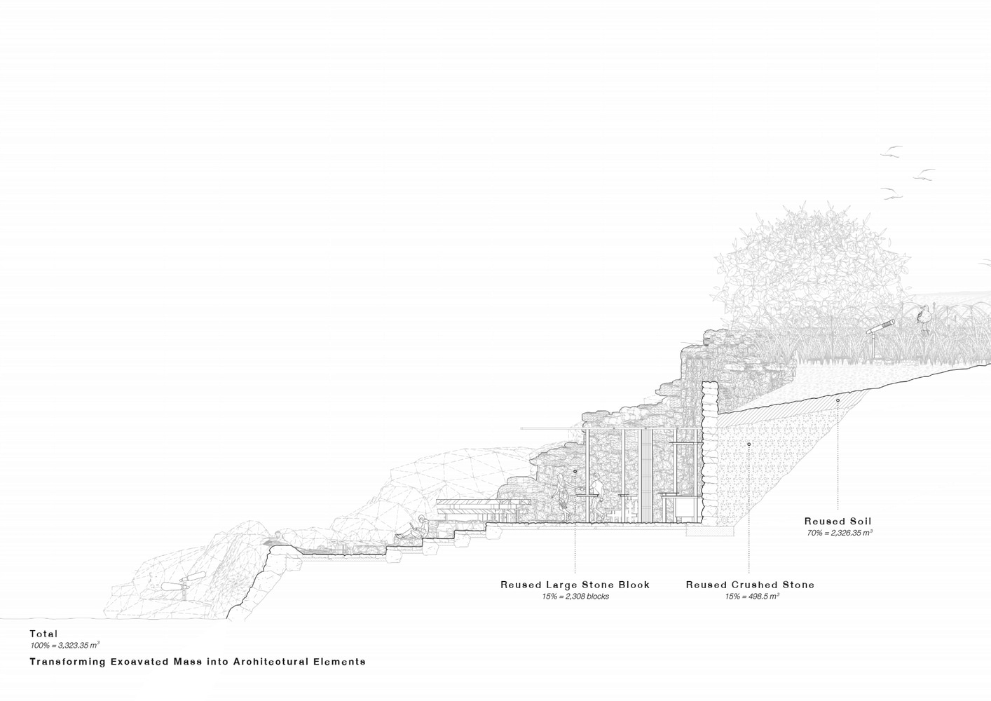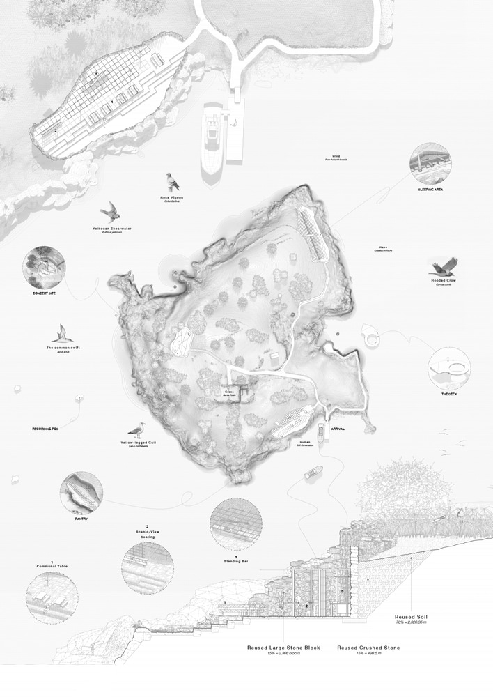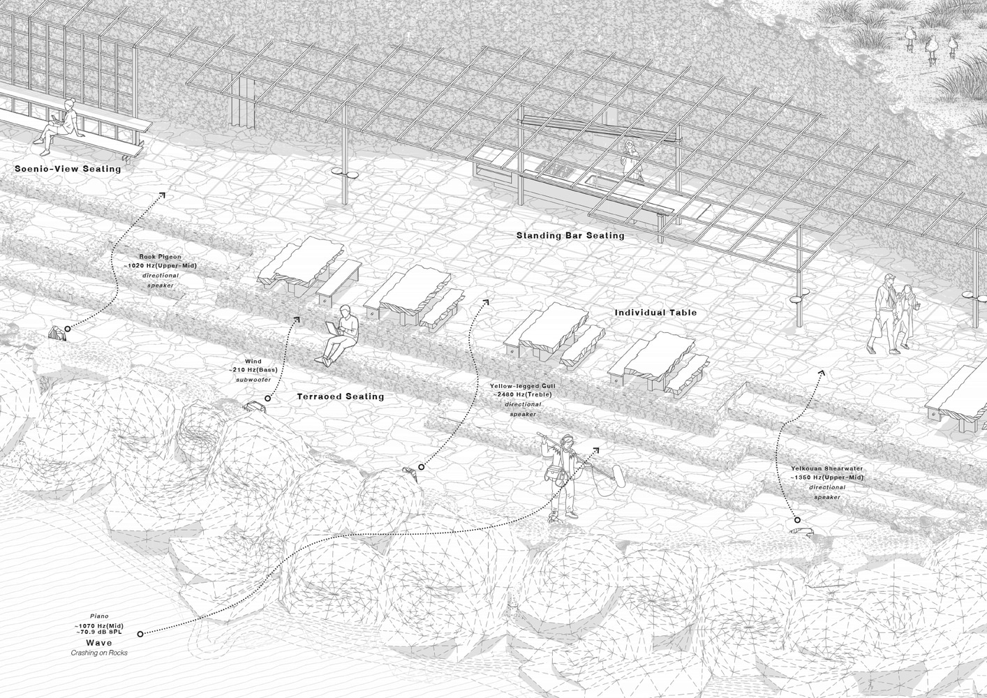 The Sound Field is more than an architectural intervention; it is a sonic ecosystem, a place where listening, composing, and coexisting unfold as one continuous act. The desert island of Kivotos becomes a living archive of natural sounds, meticulously recorded and transformed into a layered, evolving soundscape. A residency program invites students and practitioners of electronic music to inhabit the island, composing and performing works drawn directly from its acoustics. Here, music-making begins with attentive listening to wind, stone, water, and birds, and extends into a shared exploration of sound as a way of dwelling. The residency culminates in small-scale concerts, where intimate audiences gather to experience the island’s sonic textures as both material and performance. THE SOUND FIELD INVITES US TO INHABIT A LANDSCAPE NOT ONLY PHYSICALLY, BUT ACOUSTICALLY.